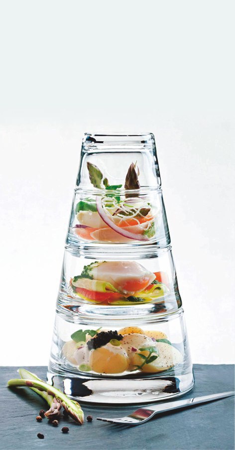 - قرارگیری 4 عدد ظرف روی یک دیگر